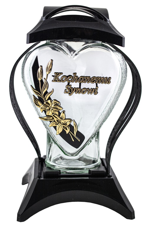 Art. nr: MUSZLO CEBULA KOCHANEMU SYNOWI CZARNY/ZŁOTY Wysokość znicza: 34 cm W opakowaniu: 3 szt. Na warstwie: 18 szt. Rodzaj opakowania: kartonowe