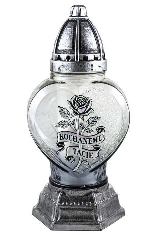 Art. Nr: P-119/2 CIEŃ KOCHANEMU TACIE SREBRNYWysokość znicza: 28,5 cmW opakowaniu: 6 szt.Na warstwie: 48 szt.Rodzaj opakowania: foliowe