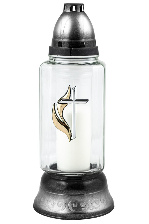 Art. nr: S-112 KRZYŻ PŁOMIEŃ BEZBARWNY/SREBRNY Wysokość znicza: 30 cmW opakowaniu: 6 szt. Na warstwie: 48 szt. Rodzaj opakowania: foliowe