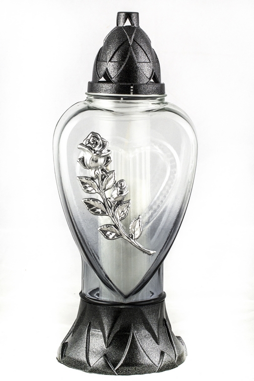 Art. Nr: Z-1510 APL. RÓŻA CIEŃ SREBRNYWysokość znicza: 33 cmW opakowaniu: 6 szt.Na warstwie: 54 szt.Rodzaj opakowania: foliowe