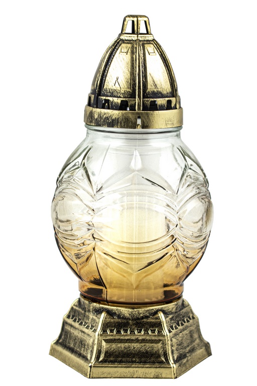 Art. nr: Z-535 CIEŃ KULA ZŁOTY Wysokość znicza: 26 cmW opakowaniu: 6 szt. Na warstwie: 54 szt. Rodzaj opakowania: foliowe