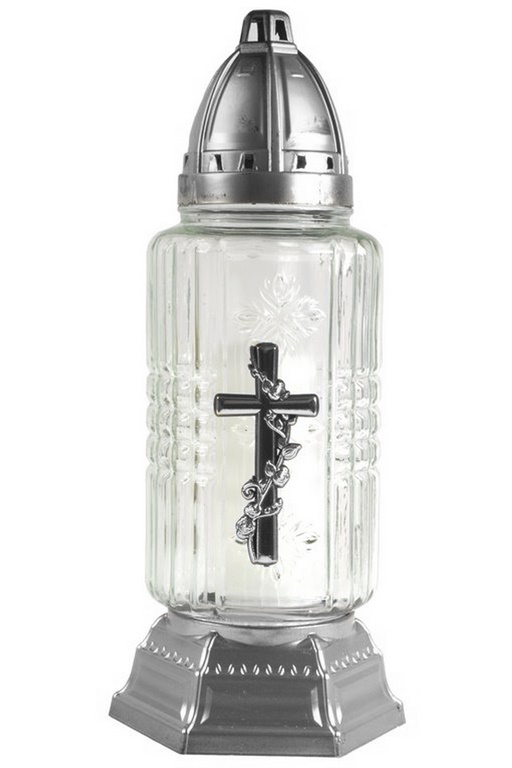 Art. nr: Z-540 KRZYŻ SREBRNY Wysokość znicza: 30,5 cmW opakowaniu: 6 szt. Na warstwie: 54 szt. Rodzaj opakowania: foliowe