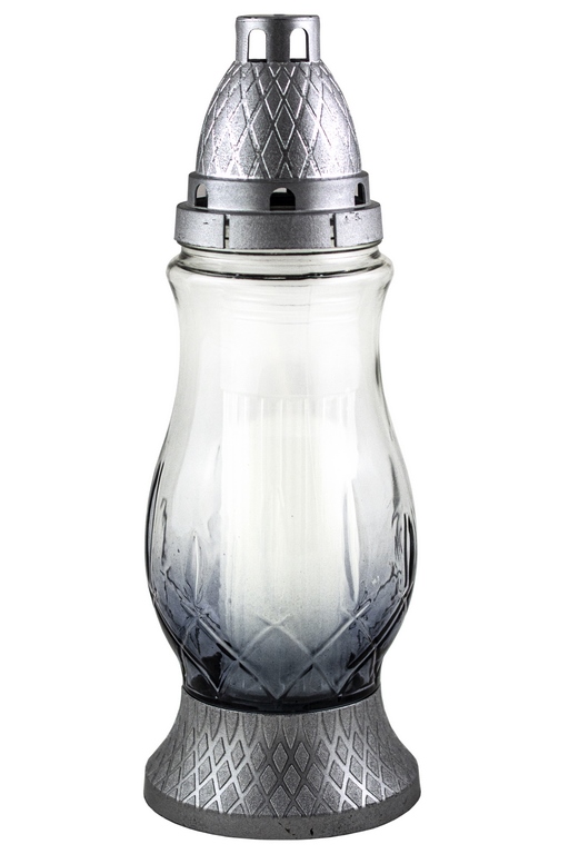 Art. Nr: Z-798 CIEŃ SREBRNYWysokość znicza: 28 cmW opakowaniu: 8 szt.Na warstwie: 64 szt.Rodzaj opakowania: foliowe