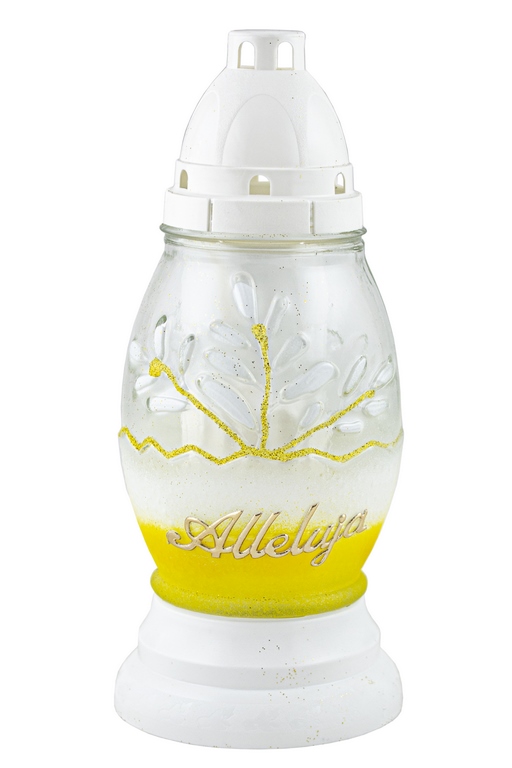 Art. Nr: Z-J2 ALLELUJA SKORUPKA BIAŁYWysokość znicza: 25 cm W opakowaniu: 8 szt. Na warstwie: 64 szt.Rodzaj opakowania: foliowe