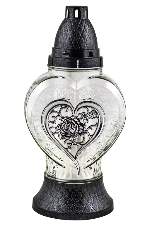 Art. Nr: ZW-296 SERCE SREBRNYWysokość znicza: 27,5 cmW opakowaniu: 8 szt.Na warstwie: 64 szt.Rodzaj opakowania: foliowe