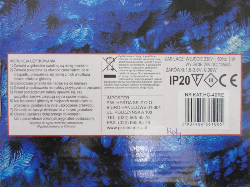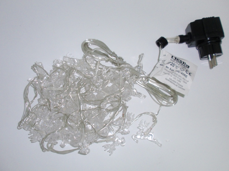 Art. nr: HC40RE Diody LED wewnętrzne 40 reniferów W kartonie: 12 szt. / Waga: 8,68 kg brutto Długość strojenia: 4 m / renifer co 10 cm Występuje w kolorach: biały, multi (mix w kartonie)