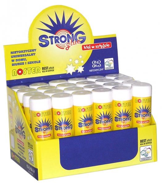 Klej w sztyfcie STRONG kleje w szytfcie wysokiej jakości nietoksyczny idealny do biura i szkoły dostępny w trzech gramaturach 8g / 15g / 21g Opakowanie: 24/576