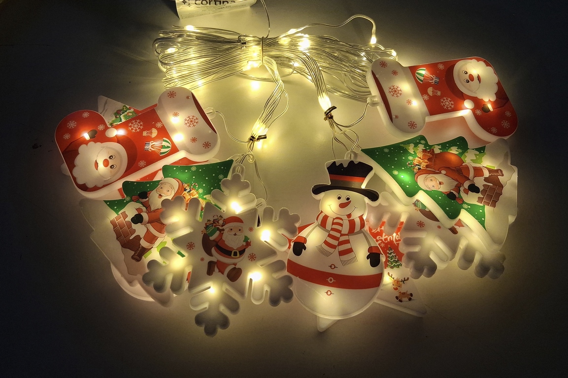 Dekoracyjna kurtyna zewnętrzna FIGURKI LED z programatorem (8 funkcji sterowania), na przezroczystym przewodzie. Kurtyna składa się z 10 frędzli długości 50 cm i 100 cm z punktami LED oraz FIGURKI umieszczonej na końcu każdego frędzla.