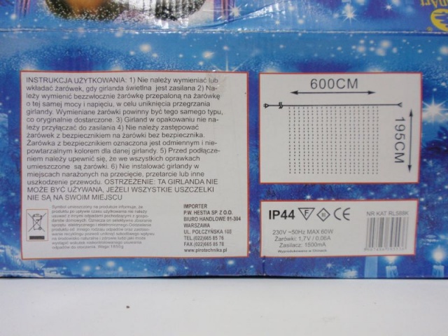 Art. nr: RL588KKurtyna świetlna 588 żarówek z transformatoremOpakowanie: 8 szt.Występuje w kolorach: biały