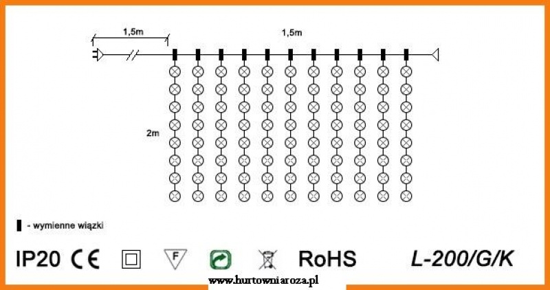 Kurtyna wewnętrzna LED 200 pkt. art. nr: L-200/G/K