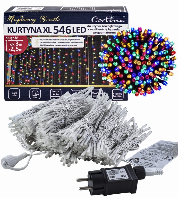 Kurtyna XL 300 cm 546 LED PROGRAMATOR+GNIAZDO, zewnętrzna, multikolor, 107/20/LED/M