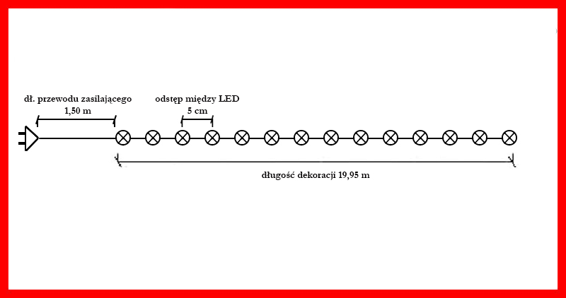 Długość dekoracji: 19,95 m (od pierwszej do ostatniej diody)