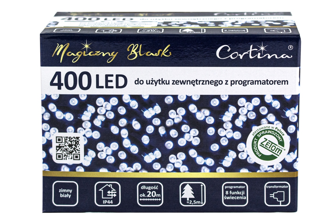Sznur 20m 400 LED PROGRAMATOR 8 FUNKCJI + PAMIĘĆ, zewnętrzne, biały zimny 616/21/LED/CW