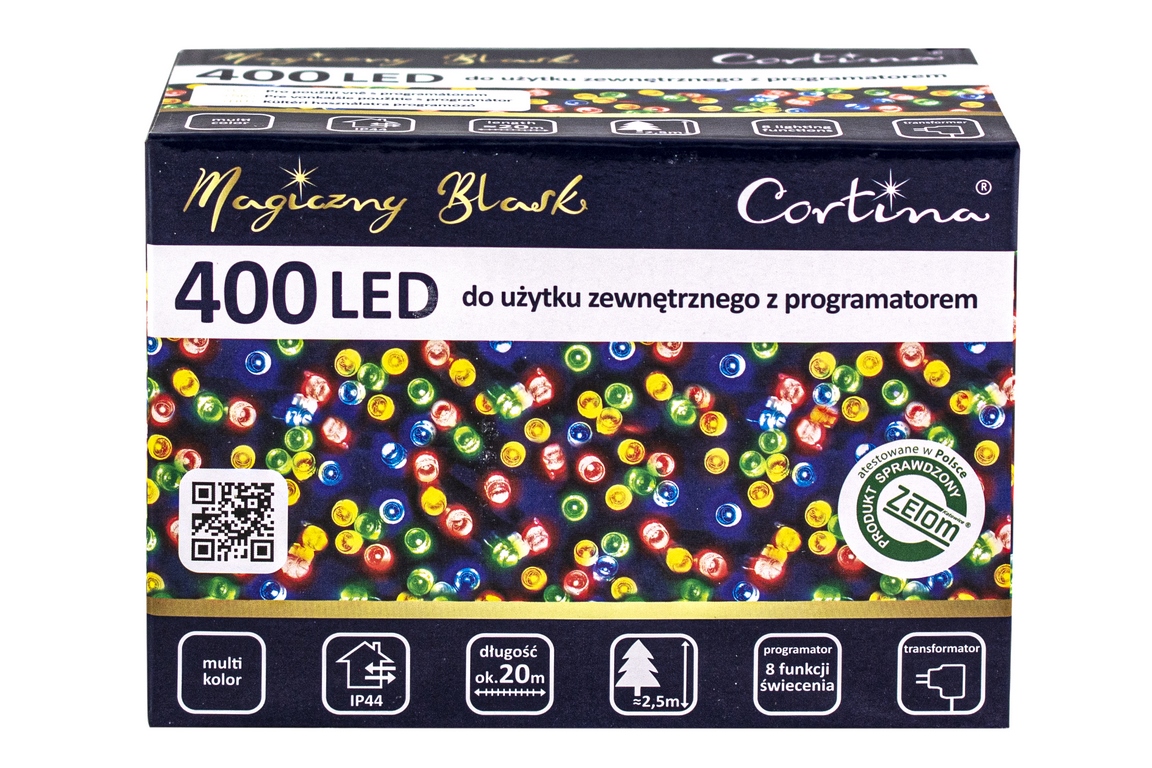 Sznur 20m 400 LED PROGRAMATOR 8 FUNKCJI + PAMIĘĆ, zewnętrzne, multikolor 616/21/LED/M