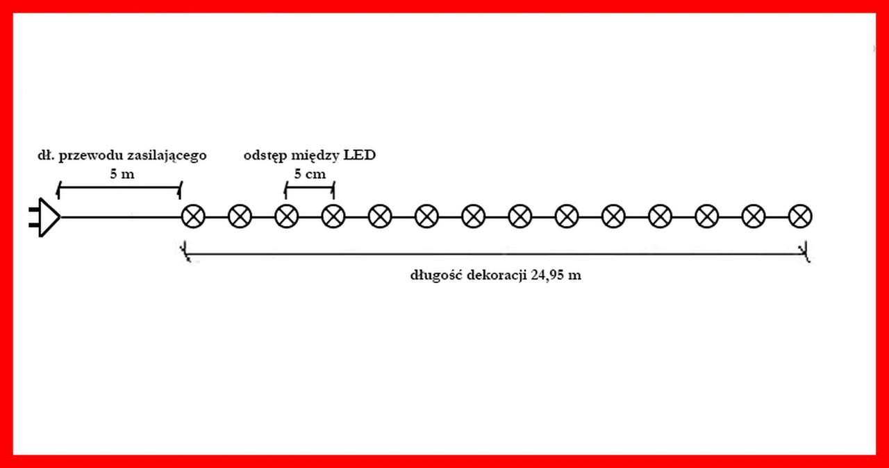 Długość dekoracji: 24,95 m (od pierwszej do ostatniej diody)