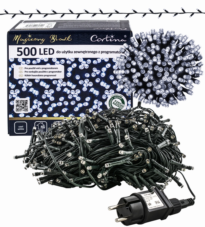 Diody LED zewnętrzne płynące z programatorem (8 funkcji sterowania) z pamięcią. Na ciemno zielonym przewodzie.