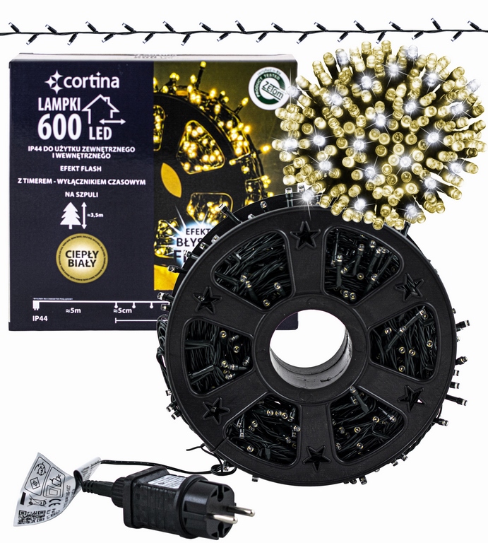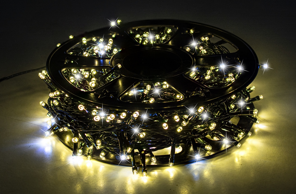 Dzięki zastosowaniu szpuli nawinięte lampki nie plączą się dzięki czemu łatwo je rozłożyć oraz przechowywać.
