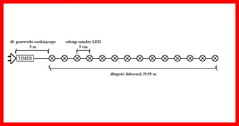 Długość dekoracji: 29,95 m (od pierwszej do ostatniej diody)