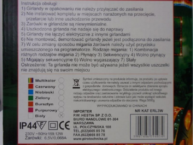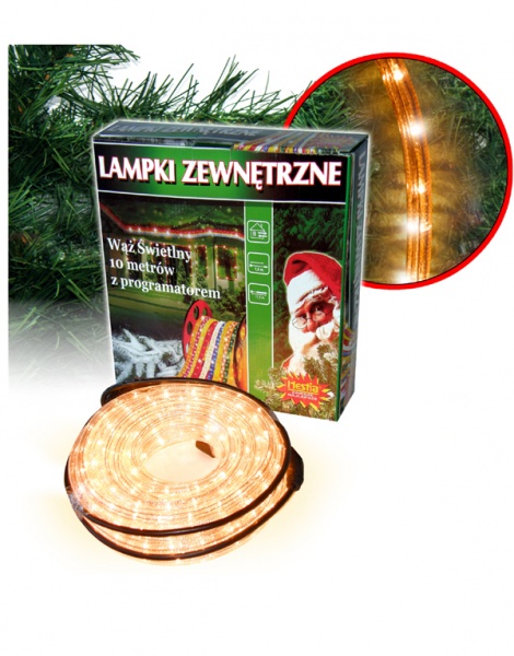 Art. nr: ERL10 Wąż świetlny zewnętrzny z programatorem o długości 10 metrów. W kartonie: 10 szt. / Waga: 22 kg brutto Występuje w kolorach: multi, biały, czerwony
