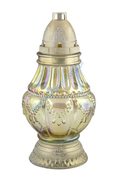 WYSOKOŚĆ ZNICZA: 31 CM OPAKOWANIE: 4 SZT. (OPAKOWANIE KARTONOWE) NA WARSTWIE: 48 SZT. NA PALECIE: 384 SZT. KOLORY: MIODOWY Z EFEKTEM TĘCZY