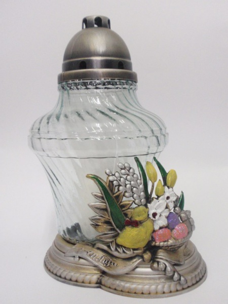 Art. nr: Z-Dzwon Duży Wielkanoc Znicz na wkład: WK-14 Czas palenia: 90 h Wysokość znicza: 35,5 cm Opakowanie: 3 szt. Na warstwie: 18 szt. Na palecie: 108 szt. Kolory: biały