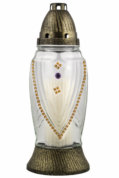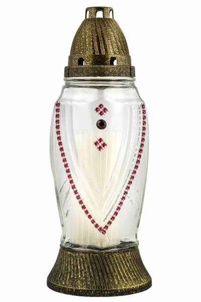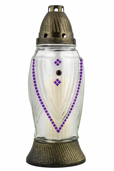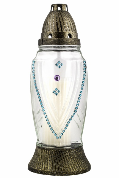 Art. nr: ZP-249 CYRKONIA Znicz na wkład: ZWŚ-4C Czas palenia: 56 h Wysokość znicza: 29 cm Opakowanie: 8 szt. Na warstwie: 64 szt. Na palecie: szt. Kolory: biały ze złotymi cyrkoniami, biały ze srebrnymi cyrkoniami, biały z czerwonymi cyrkoniami, biały z błękitnymi cyrkoniami, biały z fioletowymi cyrkoniami,