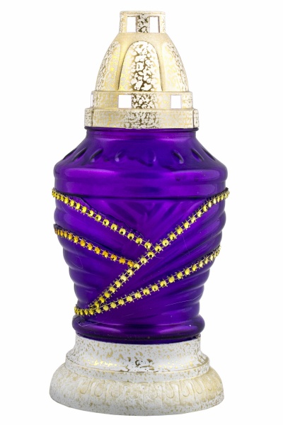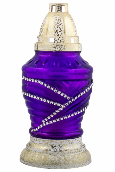 Art. nr: ZP-840 Znicz na wkład: ZWŚ-3C Czas palenia: 48 h Wysokość znicza: 24 cm Opakowanie: 8 szt. Na warstwie: 64 szt. Na palecie: 512 szt. Kolory: fioletowy ze srebrnymi cyrkoniami, fioletowy ze złotymi cyrkoniami (MIX w zgrzewce)