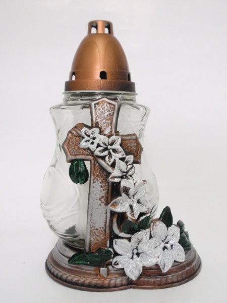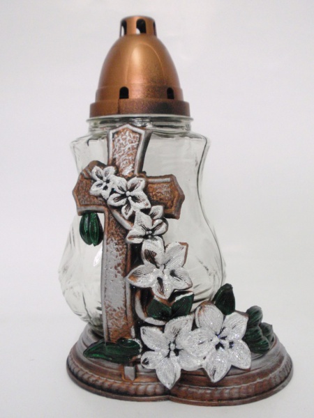 Art. nr: Z-1170 Storczyk Znicz na wkład: WK-4 Czas palenia: 54 h Wysokość znicza: 29 cm Opakowanie: 5 szt. Na warstwie: 40 szt. Na palecie: 320 szt. Kolory: biały