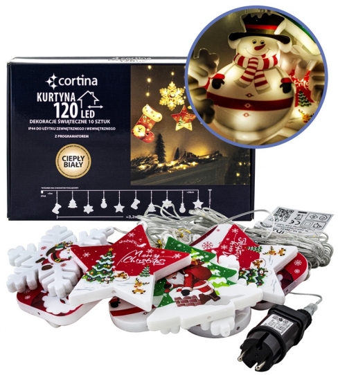 Kurtyna 320 cm 10 FIGUREK 120 LED PROGRAMATOR, zewnętrzne, biały ciepły 7/25/LED/WW
